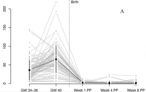 Dukic J, Johann A, Henninger M, Ehlert U. Estradiol and progesterone from pregnancy to postpartum: a longitudinal latent class analysis. Front Glob Womens Health. 2024 Oct 9;5:1428494. doi: 10.3389/fgwh.2024.1428494. PMID: 39444825; PMCID: PMC11496150.